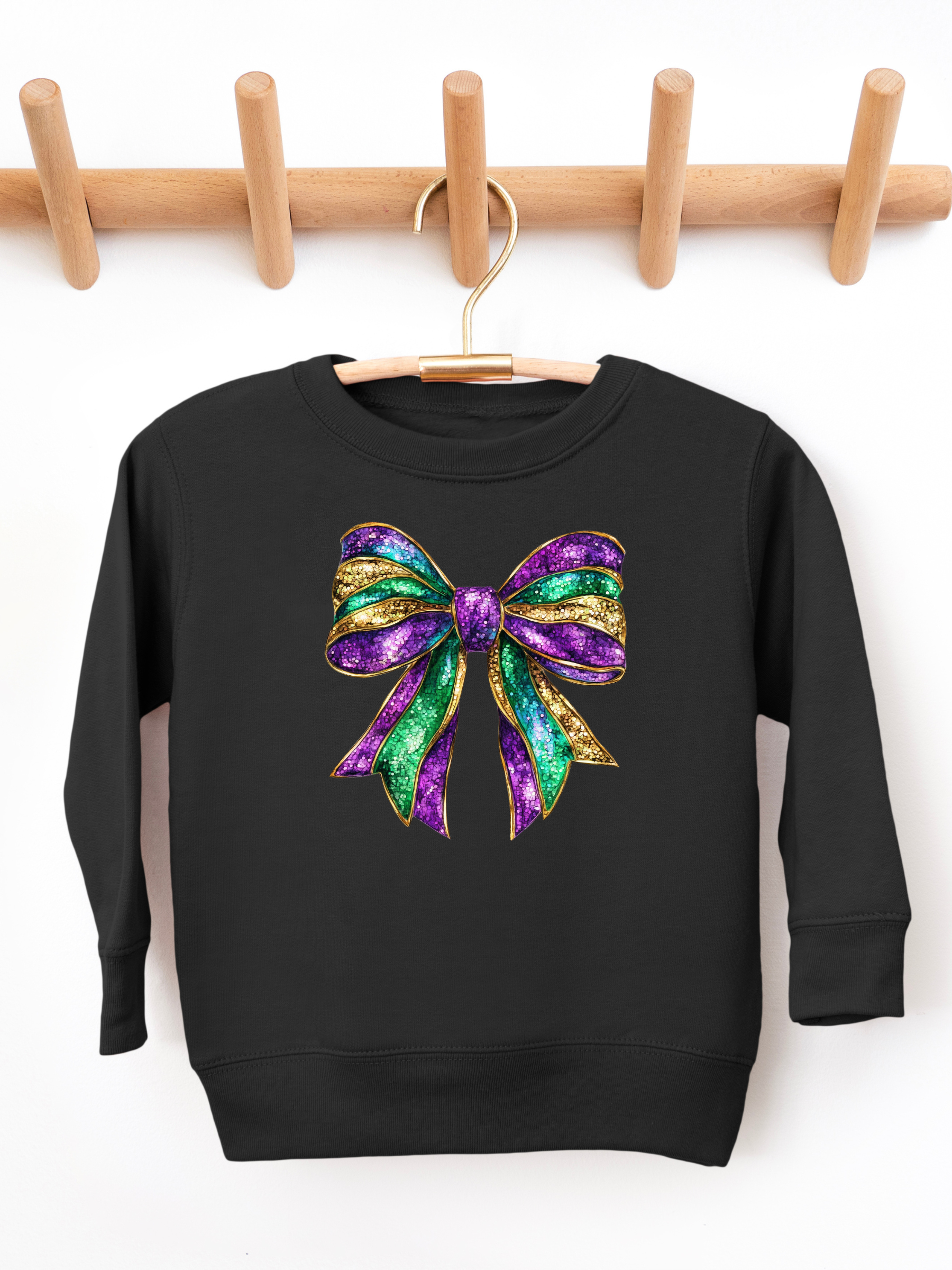 Faux Sparkly Mardi Gras Bow Toddler Graphic Sweatshirt